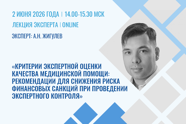 2 июня 2026 года на Информационно-образовательной платформе «Медицинское право» состоится лекция «Критерии экспертной оценки качества медицинской помощи: рекомендации для снижения риска финансовых санкций при проведении экспертного контроля».