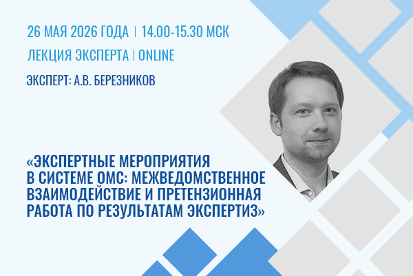 - Лекция эксперта «Экспертные мероприятия в системе ОМС: межведомственное взаимодействие и претензионная работа по результатам экспертиз»