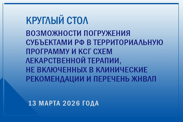 13 марта на платформе «Медицинское право» состоится круглый стол «Возможности погружения субъектами РФ в территориальную программу и КСГ схем лекарственной терапии, не включенных в клинические рекомендации и перечень ЖНВЛП».